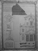 Single analytique sheet, monochromatic (charcoal gray) watercolor.